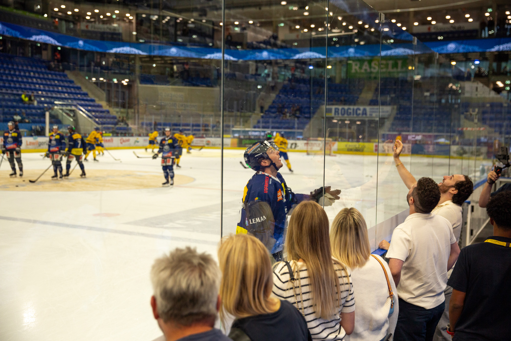 Dieses fantastische Erlebnis befindet sich im Umkleidekorridor und ermöglicht es den Fans, die Spieler zu sehen, bevor sie das Eis für die Aufwärmphase betreten, und dann die gesamte Aufwärmphase vom Eis aus zu verfolgen.